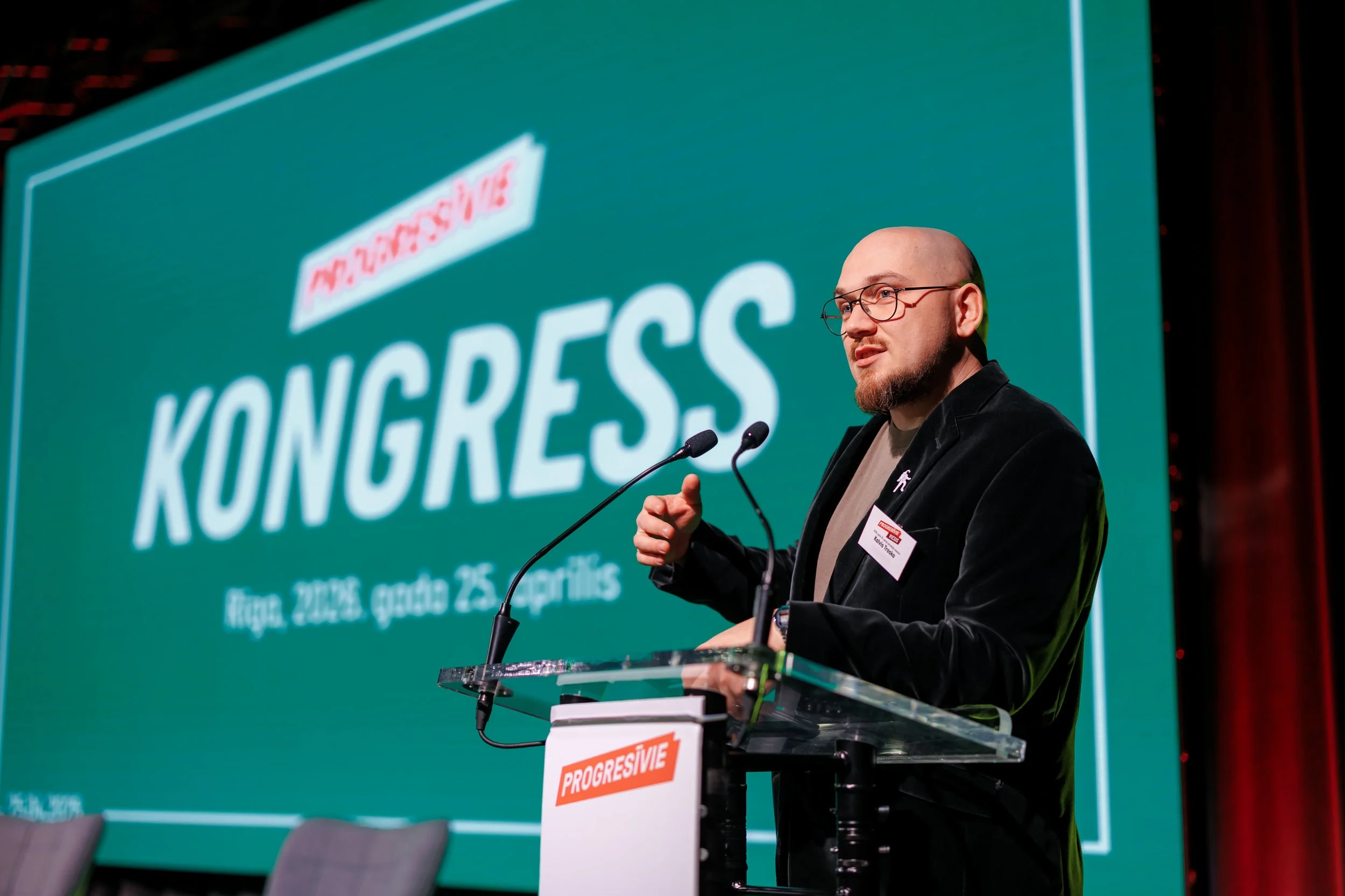 Sestdien, 2026. gada 25. aprīlī, VEF kamerzālē "Spīdola" Rīgā notika politiskās partijas Progresīvie ārkārtas kongress, kurā pulcējās aptuveni 150 cilvēku: partijas biedri un viesi, lai kopīgi iezīmētu partijas ceļu uz 15. Saeimas vēlēšanām šī gada rudenī.